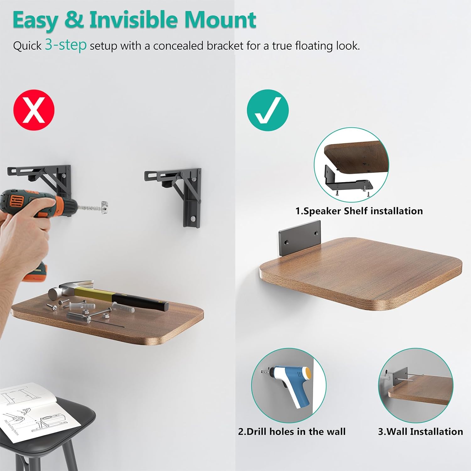 About this item ULTRA-STRONG DUAL SPEAKER SUPPORT (55 LBS PER SHELF): Get a SET OF 2 WALI heavy-duty floating shelves, each engineered to safely hold...