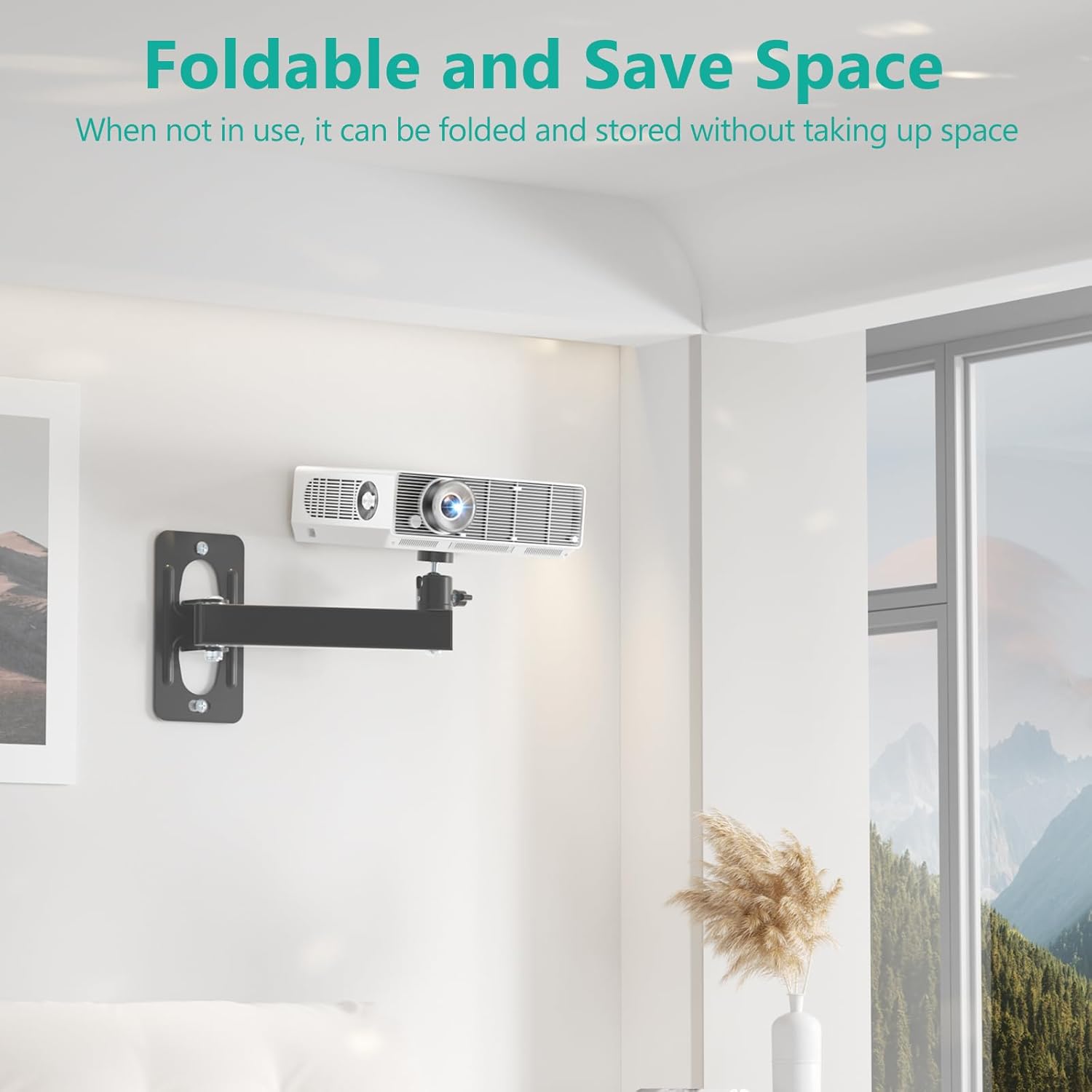 WALI Foldable Projector Wall Mount Universal Adjustable Wall Projector Mount Aluminum Alloy Projectors Stand,1/4" M4 M6 Screw Size,(1330LM-PM), Black