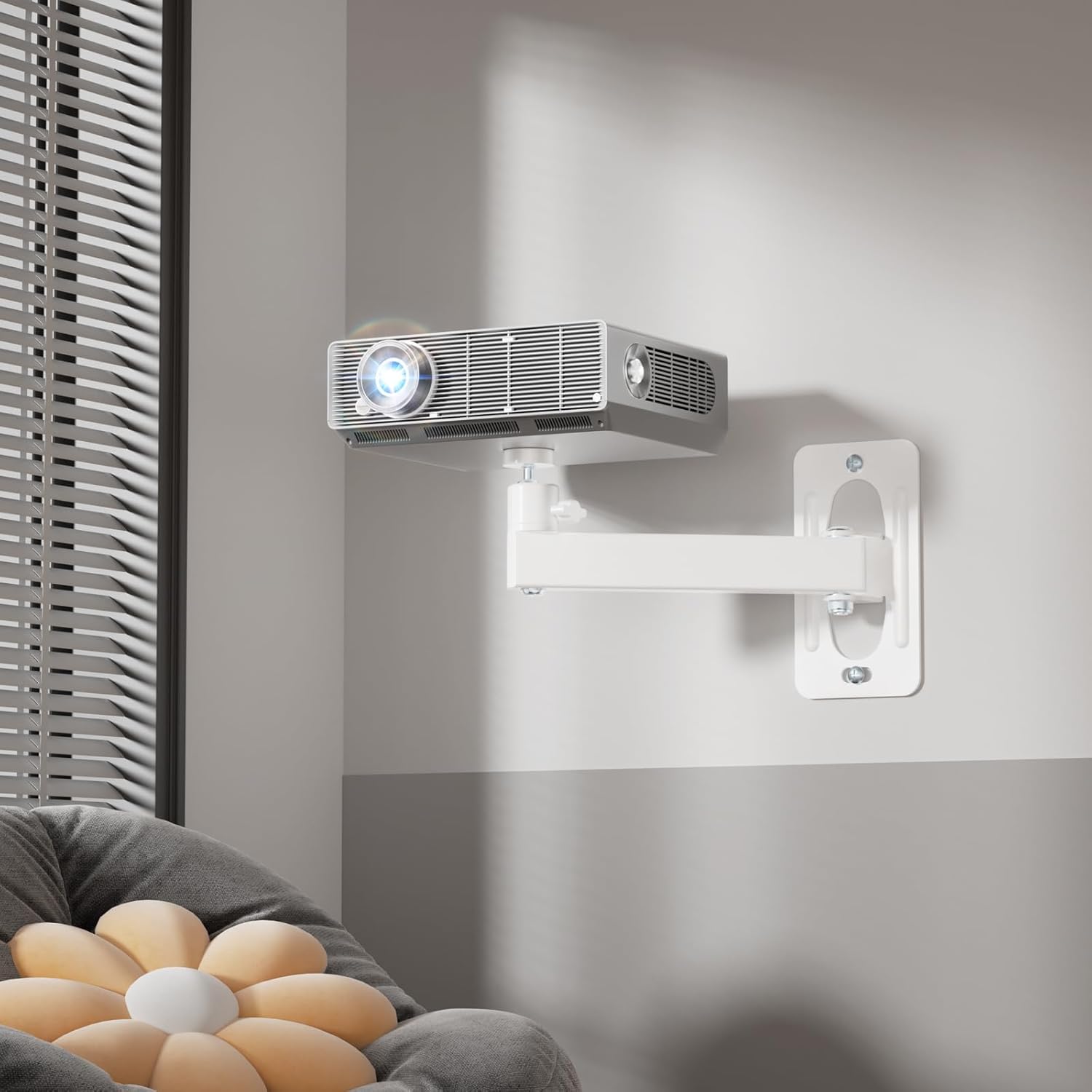 WALI Mini Porjector Wall Mount, Wall Projector Mount for 1/4" M4 M6 Screws, Fully Adjustable Projector Hanging Bracket Ceiling Mount Holder Holds up 22lbs, White (1330LM-PMWS)