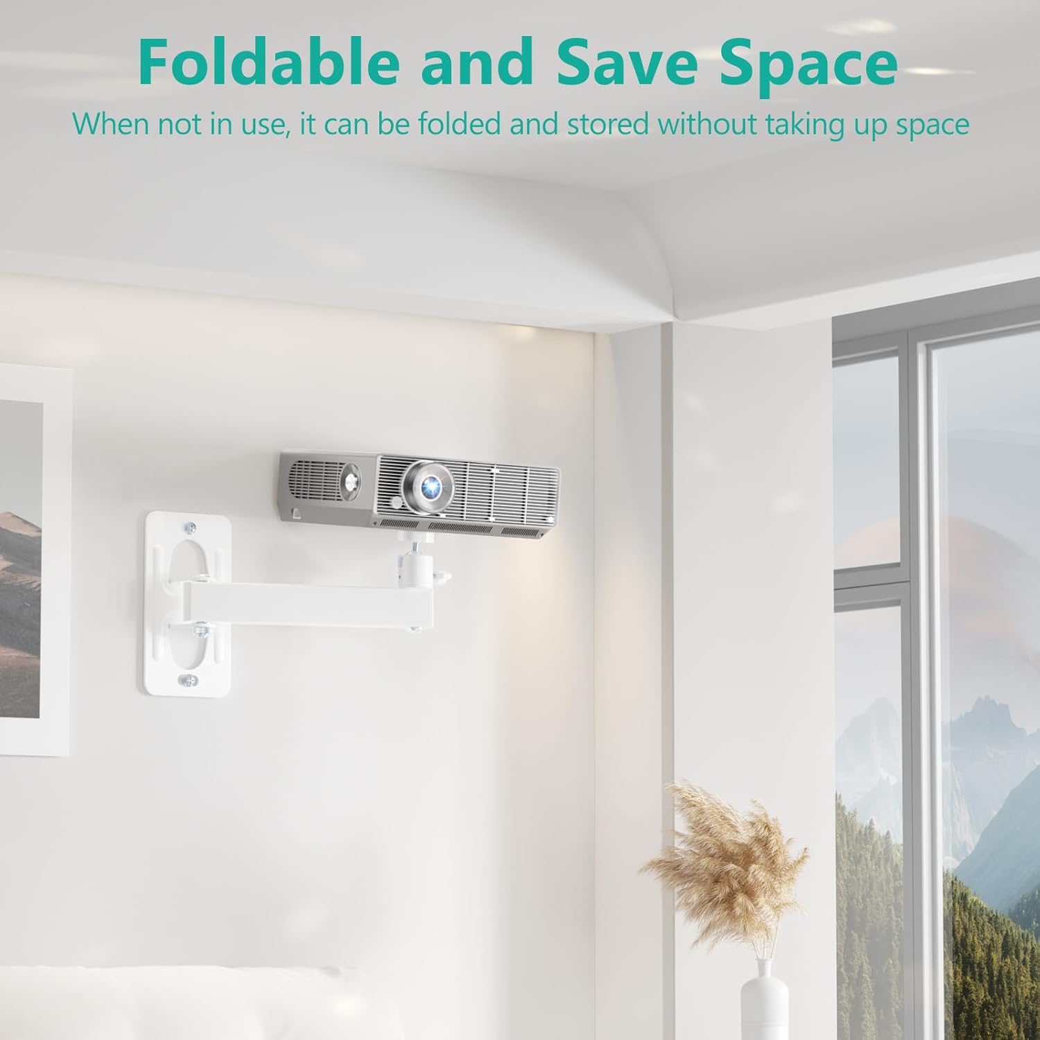 WALI Foldable Projector Wall Mount Universal Adjustable Wall Projector Mount Aluminum Alloy Projectors Stand,1/4" M4 M6 Screw Size,(1330LM-PMW), White