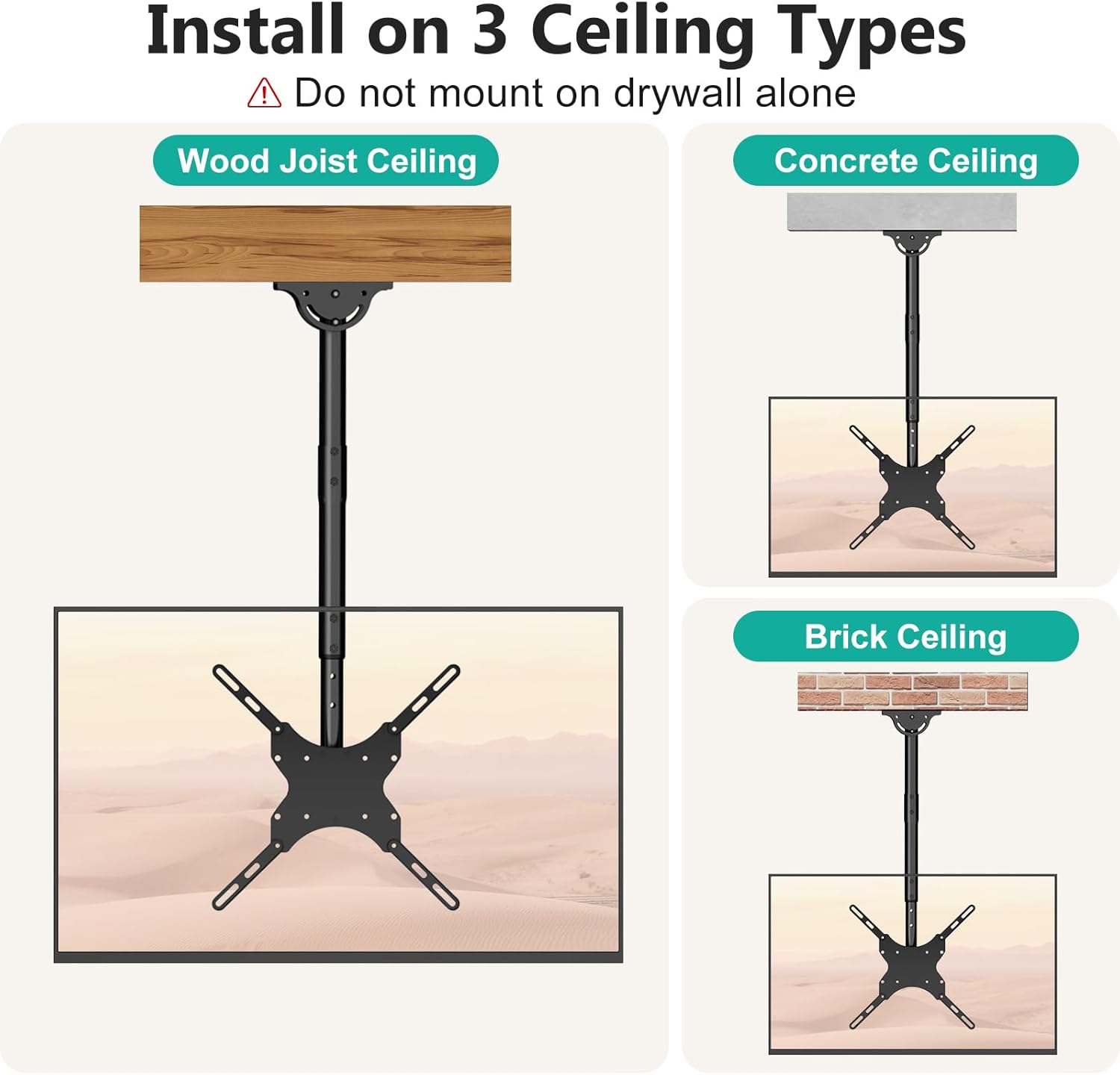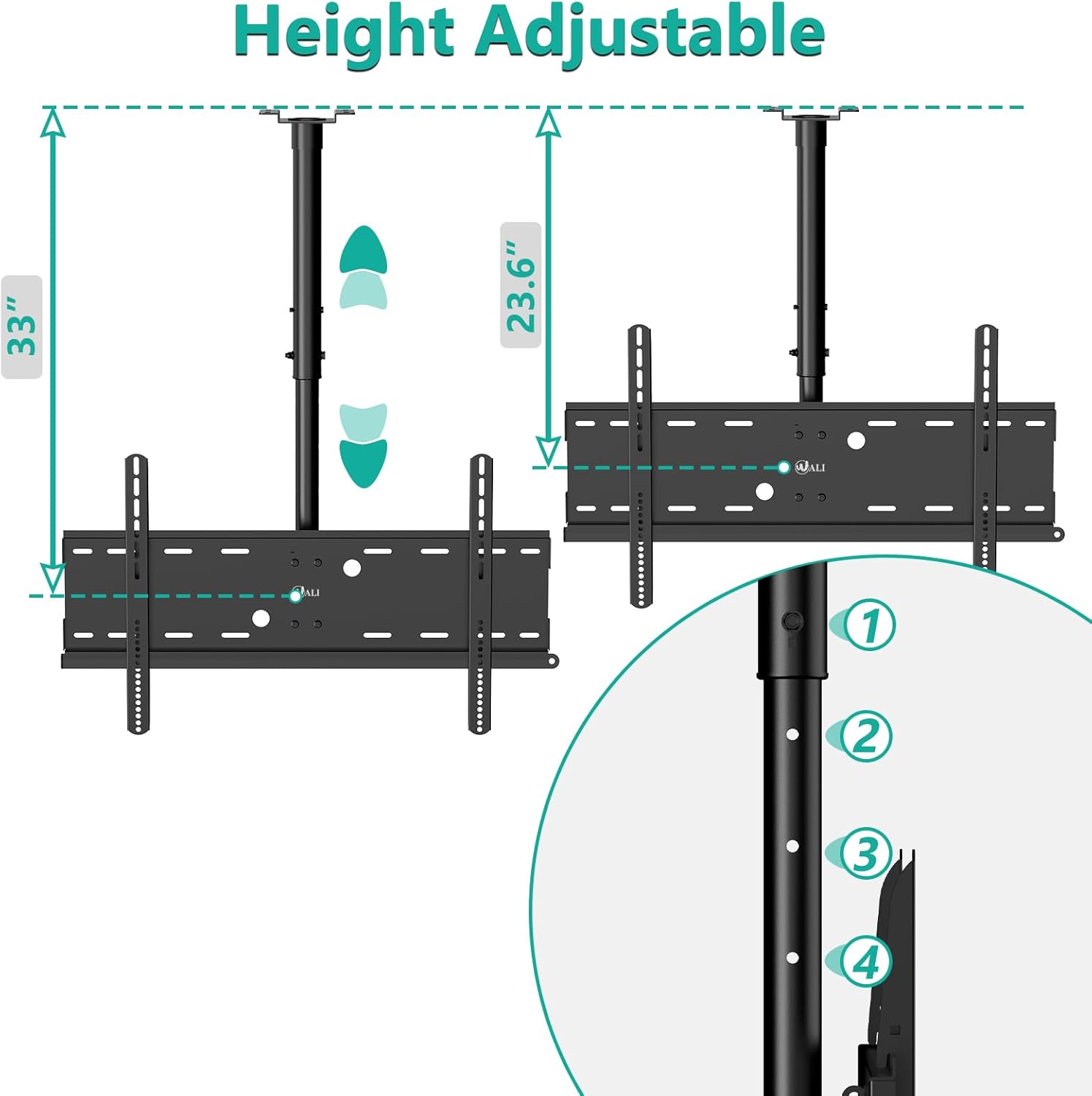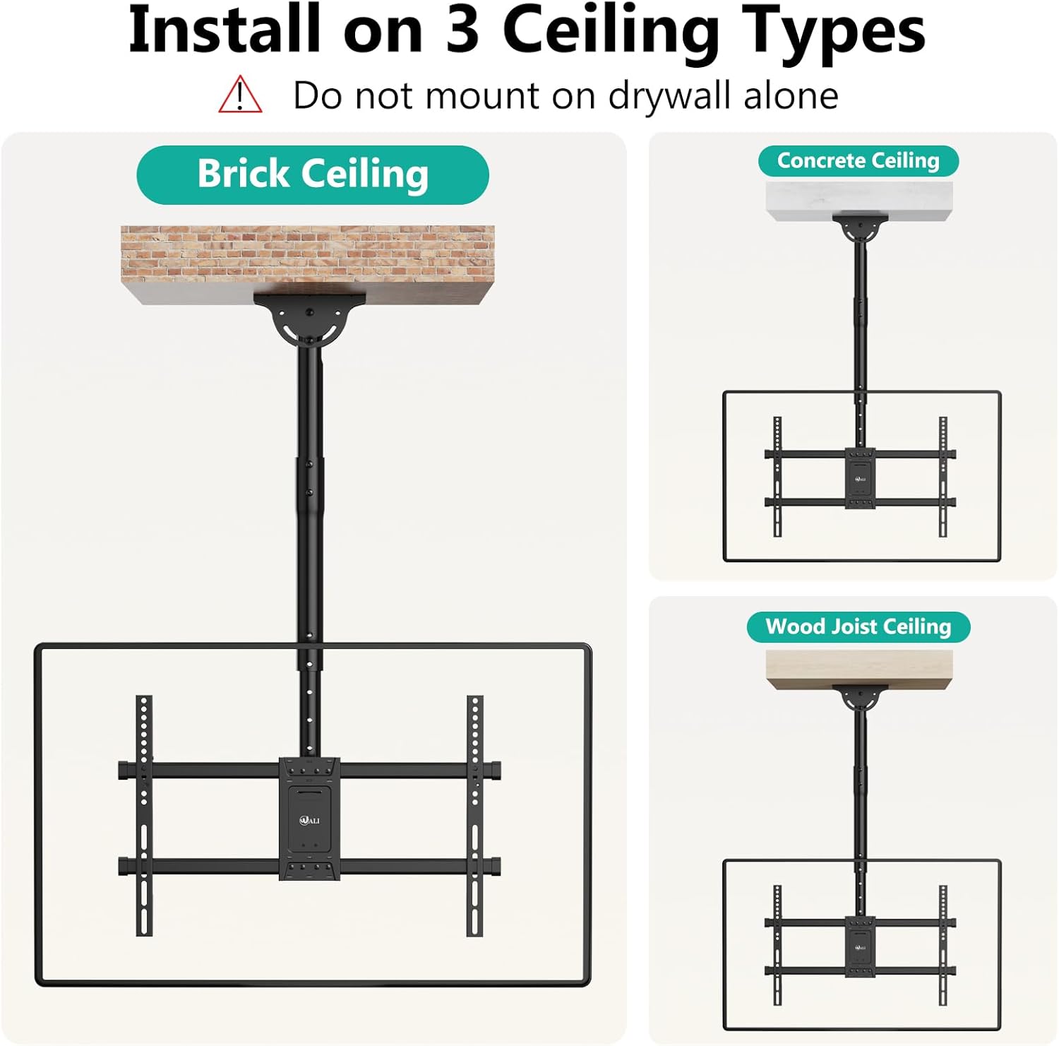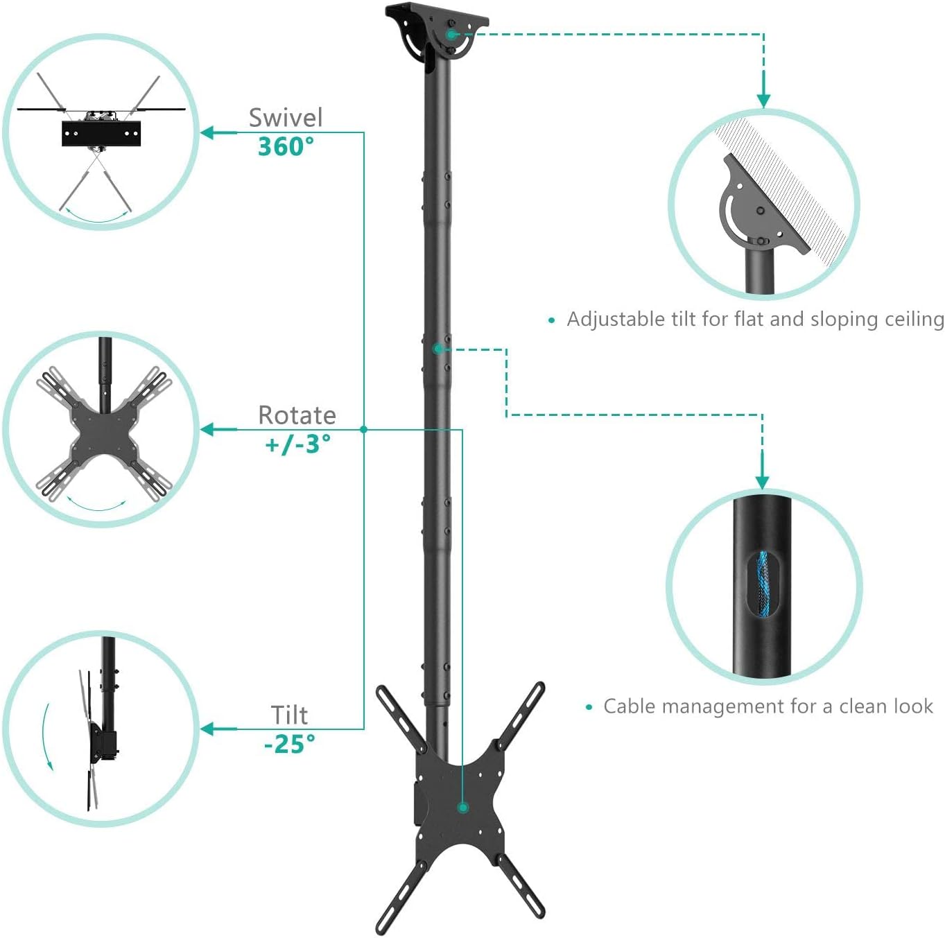 WALI Ceiling TV Mount for 42-90 inch, Hanging Adjustable TV Ceiling Mount Bracket Fits Most LED, LCD, OLED 4K TVs, Holds up to 220lbs, Max Mounting Holes 800x400mm (CM4290), Black