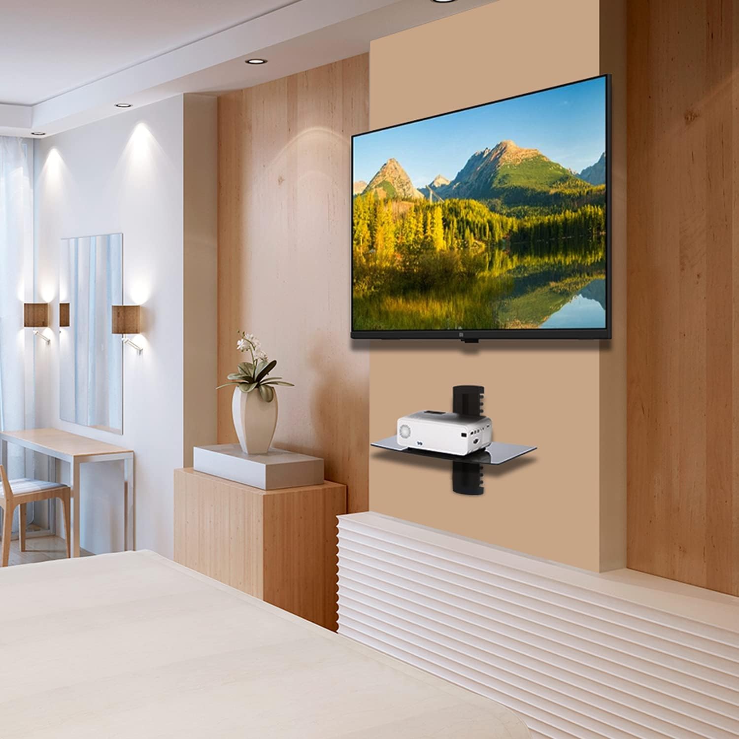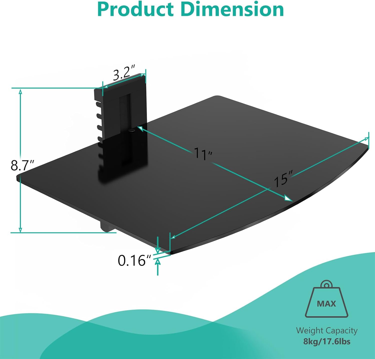 WALI Floating Entertainment Center Shelves, Holds Up to 17.6lbs, TV Shelf with Strengthened Tempered Glasses for DVD Players, Cable Boxes, Games Consoles, TV Accessories (CS201B), 1 Shelf, Black