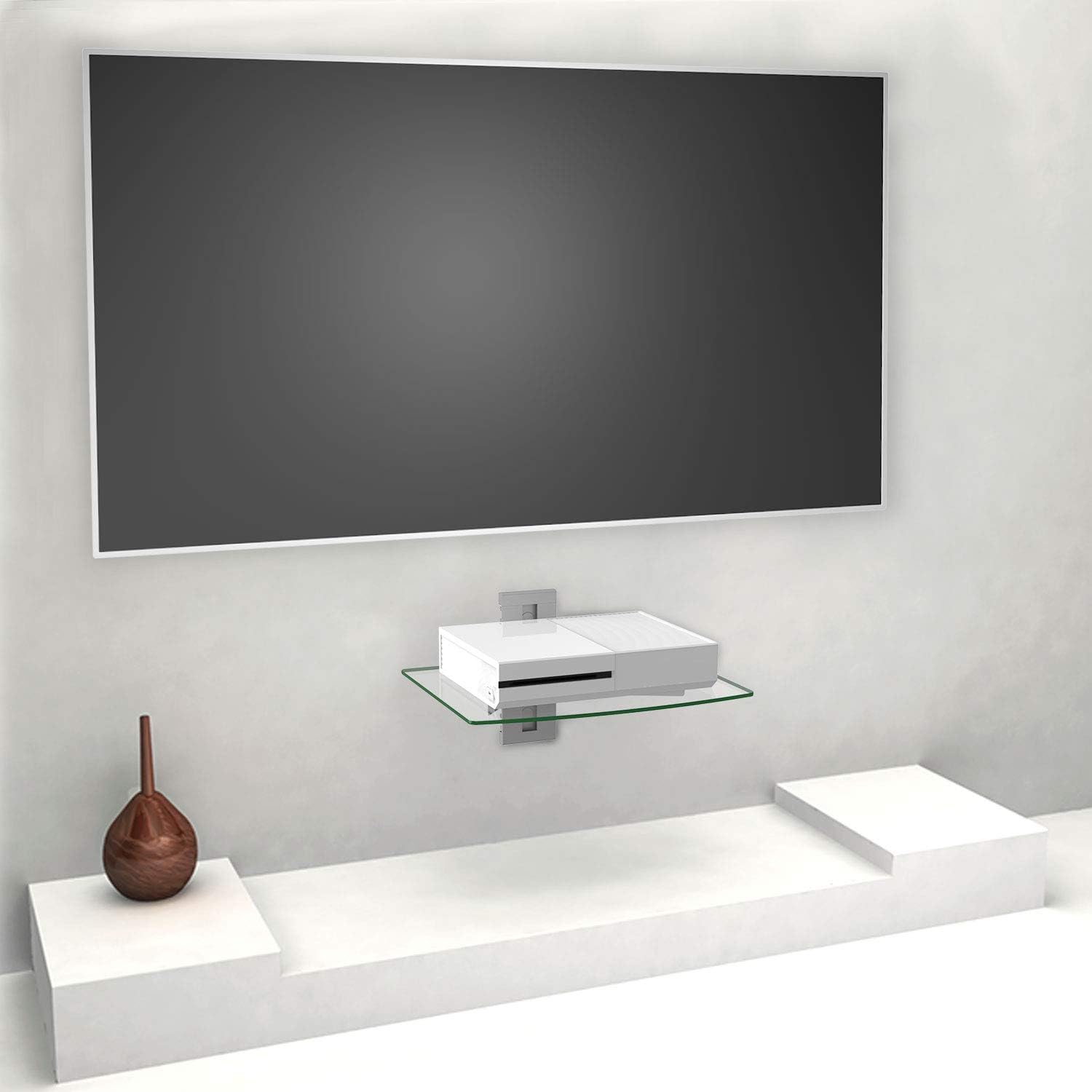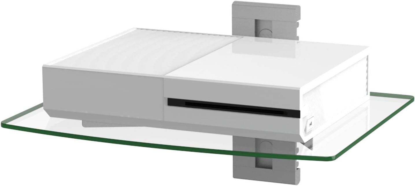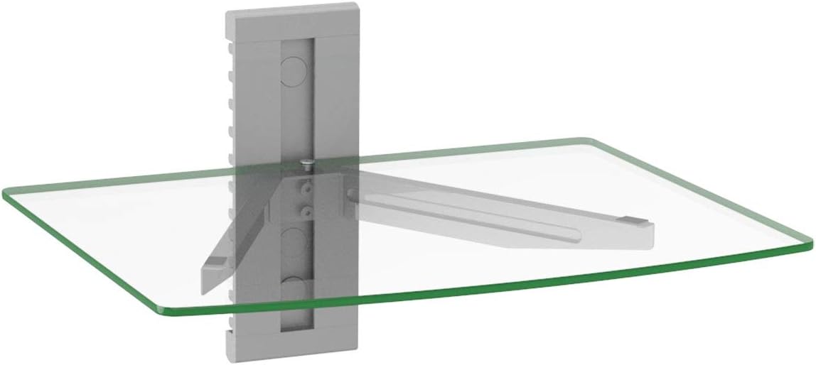 WALI Floating Entertainment Center Shelves, Holds Up to 17.6lbs, TV Shelf with Strengthened Tempered Glasses for DVD Players, Cable Boxes, Games Consoles, TV Accessories (CS201S), 1 Shelf, Silver