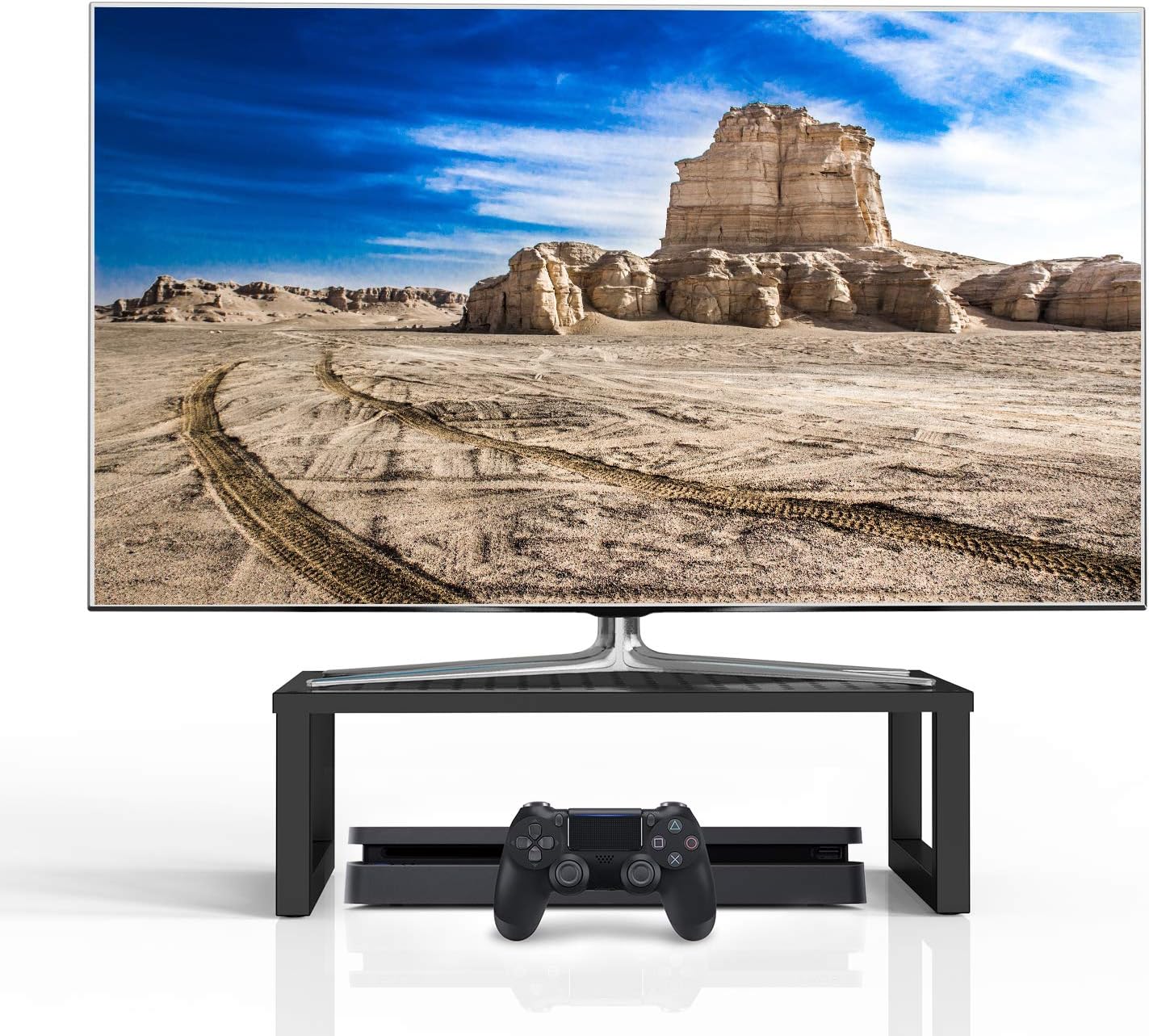 WALI Universal TV Stand 55 inch TV, TV Stand Mount for 22-65 Inch LCD Flat Screen TVs, Table Top TV Stands Holds up to 110lbs Mounting Holes up to 800 by 500mm (TVS001), Black